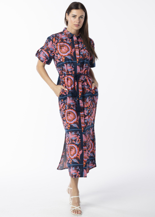 Платье-рубашка от SuperDry для женщин привлекает внимание своим ярким и интересным узором. Оно выполнено из прочной ткани, что делает его идеальным для летних дней. Платье оснащено отворотами на рукавах, застежкой на пуговицы спереди и поясом, который завязывается на талии. Боковые разрезы добавляют дополнительный комфорт. Модель имеет рост 176 см и носит размер 36.