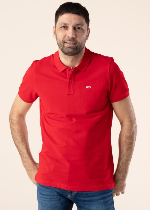 Нестареющее рубашка-поло Tommy Jeans придаёт чувство уверенности. Мужественное и воротник с отворотом рубашка-поло- эластичное и хорошо сидящее. На горловине имеет застёжка на пуговицы , на груди находится вышитый логотип-флаг и на внешнем боку разрез. Рост модели - 188 см и носит размер L.