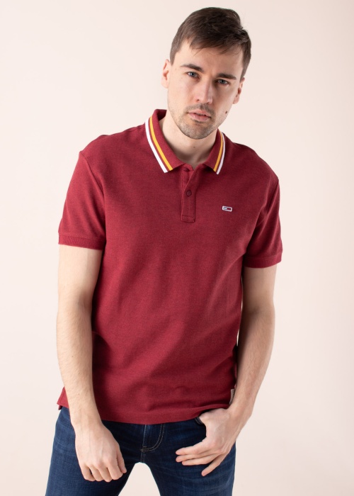 Рубашка-поло Tommy Jeans идеальна для ношения в офисе или же в торжественных случаях. С классическим отложным воротником рубашка застёгивается спереди на две пуговицы, с левой стороны снизу эмблема бренда. Внешний вид улучшают эффектные полоски на воротнике. Прочная хлопчатобумажная ткань хорошо прилегает к телу, а разрезы по бокам на нижнем краю создают удобство при движении. Рост модели 188 см, носит размер L. Материал: органический хлопок 100%. Цвет: красный.