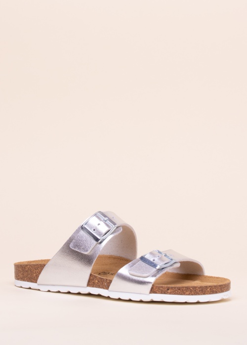 Удобные босоножки Cosmos, женственности которым придали блестящим верхом. Босоножки регулируются пряжками. Внутренняя часть ремней из валяного текстиля. Анатомическая стелька поддерживает ноги, имеет смягчитель и чашевидную форму, а замшевая поверхность обеспечивает уют. Промежуточный слой подошвы из пробки делает обувь мягкой, подошва покрыта синтетическим материалом. Толщина подошвы - 2 см. Вес сандалия размера 39 - 212г. Цвет: серебряный