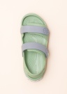 Качественный и практичный сандалии Crocs - идеально подходят для летнего ношения на пляже, заднем дворе или на городской улице. Верх изготовлен синтетический и акцента добавляют ремень. Внутри без подкладки более плотный рисунок подошвы обеспечивает устойчивость при ношении. Позволяют ребёнку наслаждаться игрой и движением.