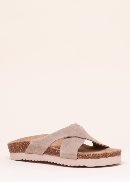 Простые и удобные замшевые сандалии Esprit выделяются своей стильной чистотой. Верхняя часть имеет две пересекающиеся панели, подчеркнутые надписью бренда в нижней части внешней стороны. Внутренняя часть также покрыта кожей, а стелька с деликатной амортизацией повторяет форму стопы владельца. Стелька выполнена из материала, напоминающего пробку, в то время как стелька из вспененной резины обеспечивает легкость, а резиновая подошва способствует сцеплению с поверхностью. 39 размер весит 201 г.