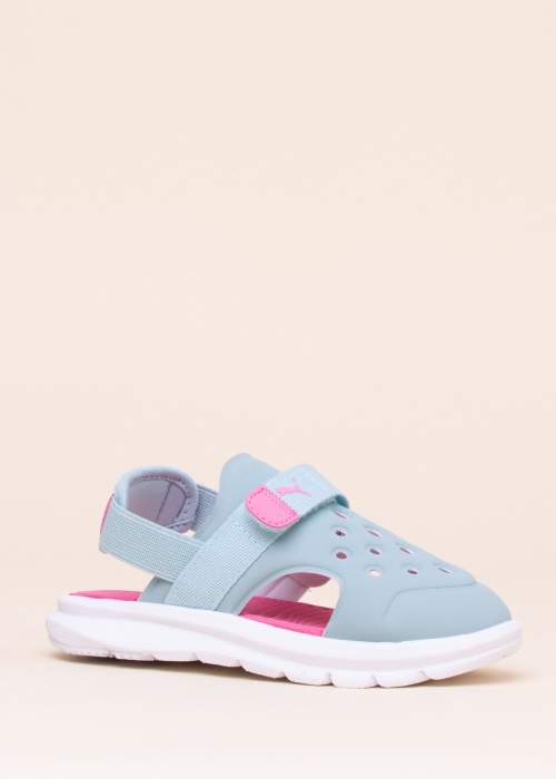 Лёгкий сандалии Puma подходят как для помещения, так и улицы. Эти удобный сандалии - закрытая носовая часть и спортивный. Верх из синтетики , практичности добавляют резинка сзади и сверху- перфорация. Внутренняя подкладка текстиль и стельку покрывает синтетика и подошва из синтетического материала. Наслаждайся беззаботной игрой.