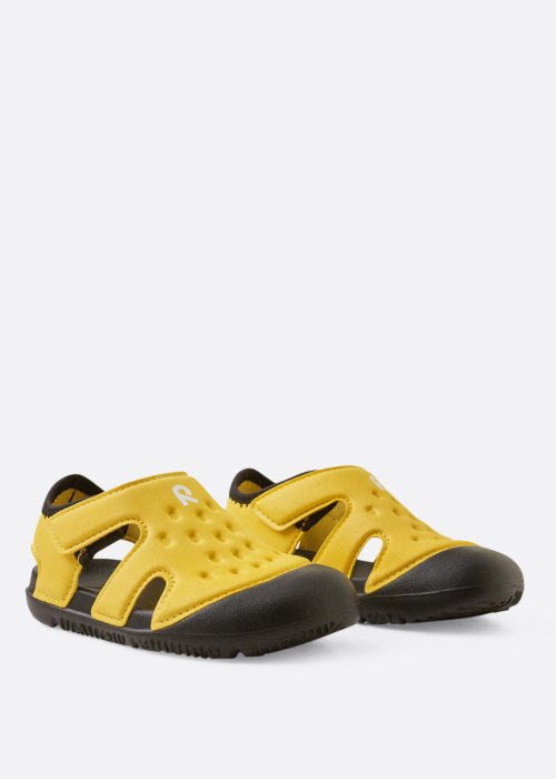 Рейма детские сандалии - это отличный выбор для детей, которые любят активные игры и прогулки. Эти сандалии выделяются ярким и привлекательным дизайном, который обязательно понравится вашему ребенку. Они очень удобны и подходят как для спортивных занятий, так и для повседневного использования как в помещении, так и на улице. Верхняя часть сандалий украшена рельефным узором, а спереди расположен логотип бренда. Боковые части сандалий обеспечивают хорошую вентиляцию, а застежка на липучке сбоку позволяет легко надевать и снимать обувь.