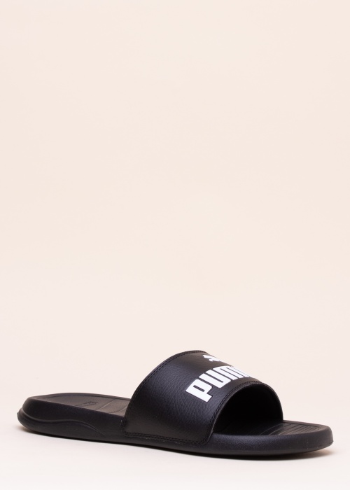 Шлёпки Puma Popcat изготовлены из мягкой искусственной кожи, на нём рельефный логотип бренда с надписью. Подкладка из текстиля со смягчителем хорошо удерживает тапок на ноге и быстро сохнет. Стелька повторяет анатомическую форму стопы. Как стелька, так и подошва из лёгкой резины, удобной в ношении и лёгкой в чистке.
