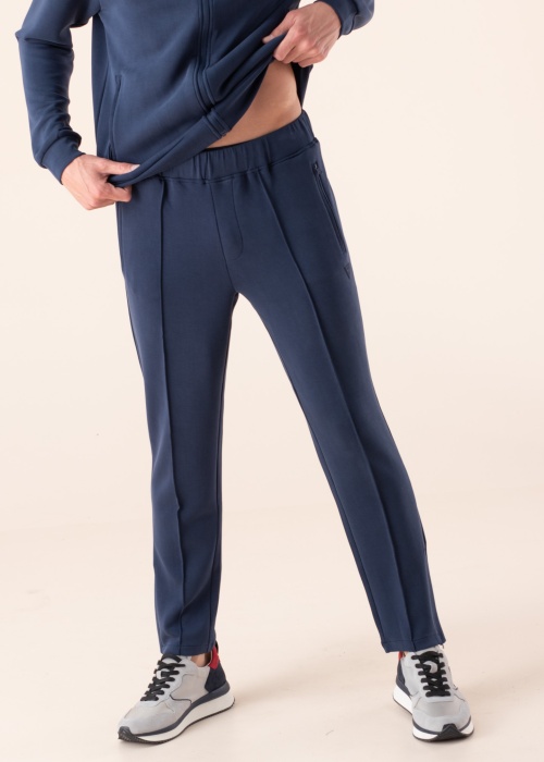 Спортивные штаны Guess Zackary ласкают своей мягкостью. Приятно мягкие и эластичные штаны частично изготовлены из волокна Tencel ®, полученного из древесины и которое имеет ряд прекрасных качеств: впитывает влагу лучше, чем хлопок, мягче чем шёлк, воздухопроницаемая лучше, чем лён. А также имеет высокую прочность и износостойкость и полностью биоразлагаемая. Эластичный пояс регулируется с внутренней стороны при помощи шнурков. По бокам помещены карманы на молнии. Штанины со вшитыми складками, с внешней стороны у нижнего края - разрезы на молнии. Рост модели 193 см, носит размер L. Материал: модал 54%, полиэстер 40%, эластан 6%. Цвет: тёмно-синий.