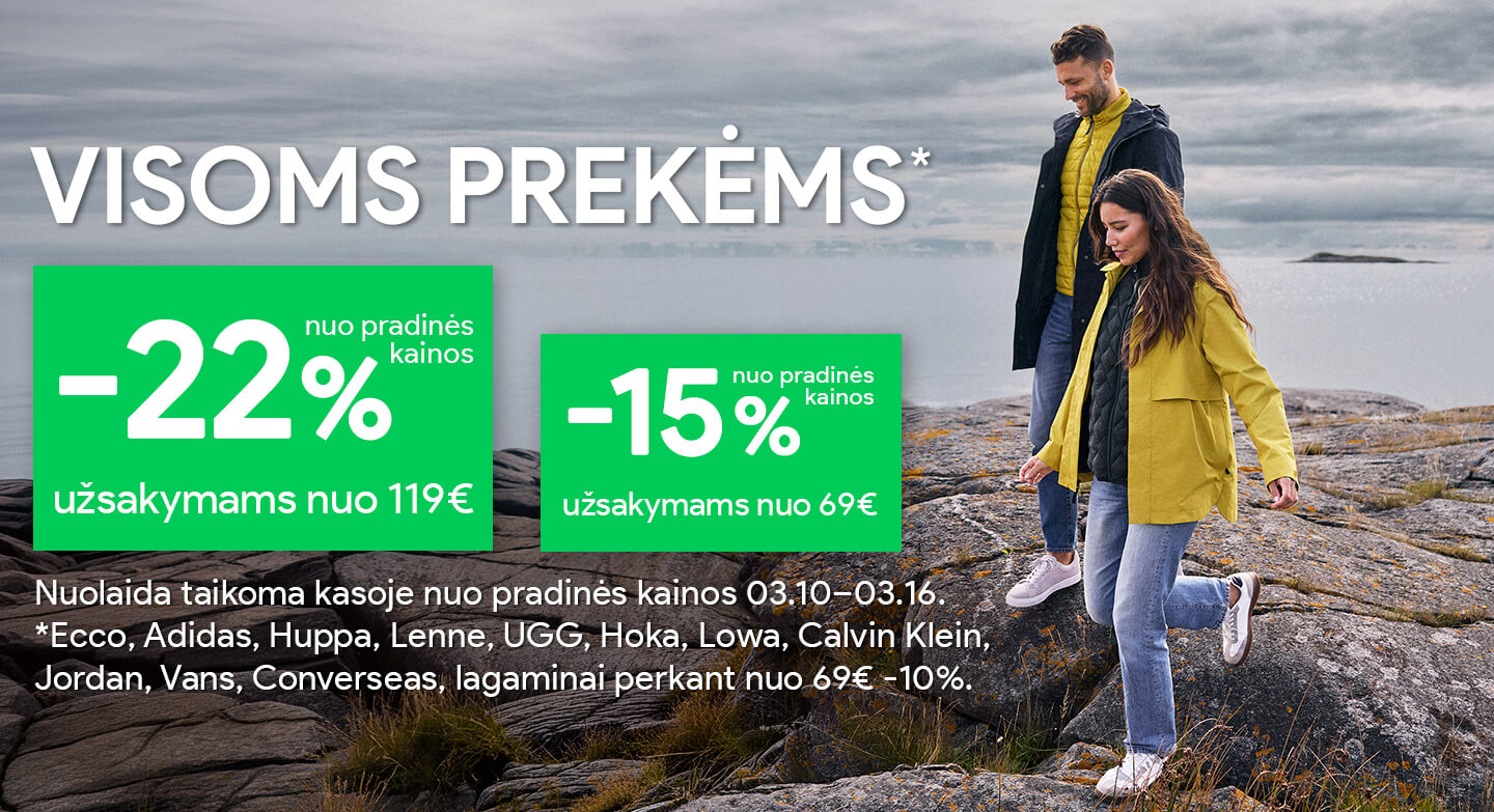 IŠPARDAVIMAS! Rudens striukės, džinsai, aulinukai, kasdieniai ir sportiniai batai, džemperiai su gobtuvais, megztiniai ir dar daugiau iki -70%! Ieškokite Moterims | Vyrams | Vaikams.