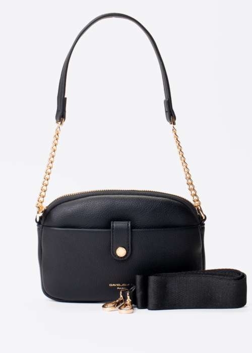 Стильная женская сумка от David Jones с логотипом бренда на передней части. На передней стороне есть карман с магнитной застежкой, а внутри — карман на молнии. Также внутри предусмотрено отделение для карт.