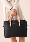 Стильная и женственная сумка для ноутбука из коллекции Ella Bugatti — превосходный аксессуар на каждый день. Одноцветная поверхность из искусственной кожи украшена светлыми деталями с инициалами бренда и золотым логотипом бренда на передней части. На задней части помещён небольшой карман на молнии. Сумка имеет одно большое отделение, застегивающееся на кнопку и основное отделение с двусторонним замком. Внутри - текстильная подкладка, а на внутренних стенках расположены дополнительные карманы различного назначения - большой карман на молнии, открытый карман для мобильного телефона, 3 отделения для карт и 3 отверстия для письменных принадлежностей. Кроме того, имеется также карман, вмещающий ноутбук размером 15,6 дюймов. Карман имеет защитную мягкую отделку и застёжку на липучке. Удобные ручки длиной 35 см, длина плечевого ремня до 155 см.