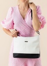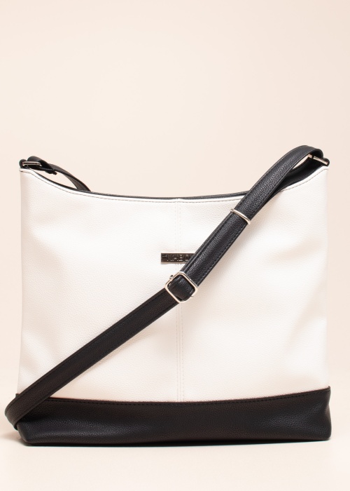 Двухцветная и красивая сумка Nabo для дней разного характера. Сумка изготовлена искусственная кожа, основное отделение открывается замок, дополнительные карманы расположены сзади, а также на внутреннем боку. Практичности добавляют открытый карман внутри , также