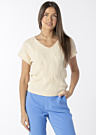 Женский свитер от EsQualo — это стильный и привлекательный элемент вашего гардероба. Он отличается комфортом и имеет V-образный вырез. Свитер украшен рельефным узором, который добавляет ему изысканности. Блестящая поверхность придаёт изделию особый шарм. Модель на фото имеет рост 178 см и носит размер S.