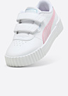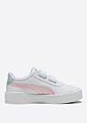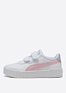 Кроссовки Puma Carina для девочек — это стильный и удобный выбор для повседневной носки. Они делают прогулки более комфортными благодаря своему дизайну. Верхняя часть обуви оснащена застежкой на липучке, что обеспечивает легкость и удобство при надевании. Перфорация в области носка добавляет дополнительную вентиляцию и комфорт. Эффектный логотип бренда сбоку придаёт обуви уникальный стиль, а технология Non Marking предотвращает оставление следов на поверхности.