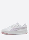 Кроссовки для девочек Puma Carina — это стильный и современный выбор для молодежи. Они оснащены подошвой на платформе, что делает их модным и актуальным вариантом. На боковой части обуви размещены фирменные логотипы Puma, подчеркивающие принадлежность к известному бренду. Верхняя часть кроссовок снабжена шнуровкой, что обеспечивает удобную фиксацию на ноге. Перфорация в области носка способствует дополнительной вентиляции и комфорту.