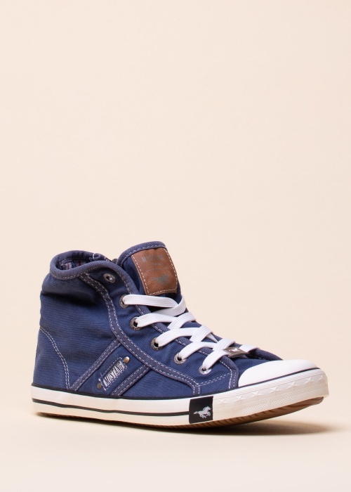Урбанистический и молодёжный тенниски Mustang придают наслаждения нахождению на улице. Поверхность изготовлена текстильный и выразительности добавляют знаки бренда. Как подкладку, так и стельку покрывает текстиль и резиновая подошва – прочная и с отличным сцеплением. Будь готовым к каждому классному дню.
