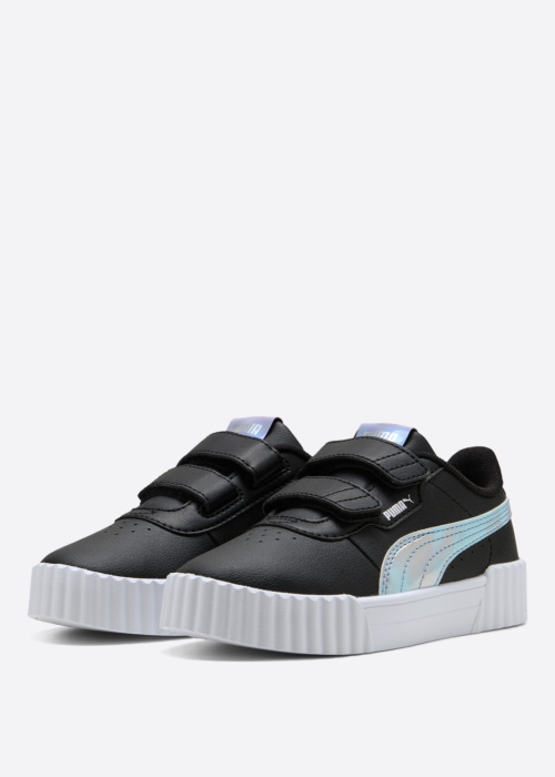 Кроссовки Puma Carina 3.0 Space для девочек — это легкая и удобная обувь. Они отлично подходят как для школьных будней, так и для прогулок в свободное время. Верхняя часть кроссовок оснащена застежкой на липучке, что делает их очень удобными в использовании. Перфорация на носке обеспечивает дополнительную вентиляцию. Логотипы бренда, расположенные по бокам, добавляют стильный акцент.