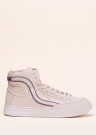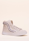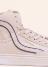 Молодёжные кеды SuperDry Basket Lux Trainer, выражающие спортивный стиль – привлекательный выбор отлично подходит для повседневного ношения. Поверхность покрыта кремово-белой, искусственной кожей, украшенной золотыми, прессованными логотипами на язычке и внешнем боку. На внутреннем и внешнем боку мотивы шнурков с синим краем, выступающие в качестве дизайнерского элемента. Носок имеет перфорацию, улучшающую циркуляцию воздуха. Высокие тенниски завязываются классическими шнурками. Внутри также искусственная кожа, стелька из пены с эффектом памяти, принимающей форму стопы. Резиновая подошва имеет хорошее сцепление с поверхностью. Вес размера 39 - 435 г.