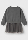 Платье Name It Mini для девочек модели Jose — это очаровательный и удобный выбор для маленьких модниц. Оно имеет длинные рукава и круглый вырез, а также эластичную и подвижную структуру, что обеспечивает комфорт при носке. Принт с милым рисунком и привлекательные оборки придают платью особый шарм.