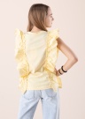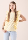 Топ Name It Divanke прекрасно сочетается с джинсами или с узкими брюками. Широкие оборки обрамляют переднюю часть изделия и спинку, образуя эффектный летний образ. Мягкая ткань с лёгкой эластичностью обеспечивает невероятный комфорт. Рост модели 147 см. Демонстрируемое изделие размер 146. Состав материала: органический хлопок 100%. Цвет: жёлтый
