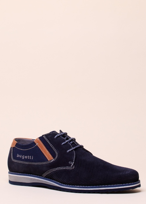 Альтернативу классическим туфлям дерби предлагают туфли Bugatti Ciro Light. Тёмно-синие замшевые туфли объединяют элегантные линии и модные элементы, добавляющие стильность изделию. Шнуровка с сине-белыми шнурками и эластичные вставки по бокам изделия обеспечивают оптимальную посадку и комфорт. Подкладка из текстиля и съёмная стелька обеспечивают желаемый уют. Подошва добавляет не только спортивность изделию, но и комфорт, а поверхность со стильными потёртостями обеспечивает современный, модный вид обуви. Вес размера 46: 388 г. Цвет: тёмно-синий. Изделие подходит также и для широкой стопы.