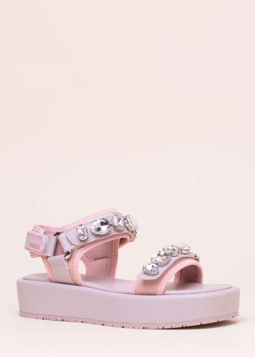 Туфли Richard от Guess привлекательны и женственны. Поверхность представляет собой сочетание искусственной кожи и текстиля, великолепные сверкающие камни добавляют акцент. Изделие крепится при помощи двух ремешков на липучке. Мягкая стелька обтянута кожей, внутренняя часть обшита текстилем, подошва на платформе великолепна и современна. Резиновая подошва обеспечивает хорошее сцепление. Высота платформы 4 см.