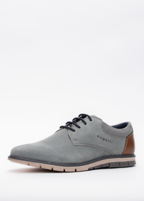 Мужские туфли Bugatti Simone представляют собой удачное сочетание комфорта и элегантности. Они отлично подходят как для повседневной носки, так и для официальных мероприятий. Стильный дизайн с перфорацией на поверхности придаёт обуви утончённый вид. На внешней стороне туфель находится логотип бренда, а шнуровка обеспечивает удобную фиксацию. Декоративный элемент на пятке добавляет оригинальности и завершает образ.