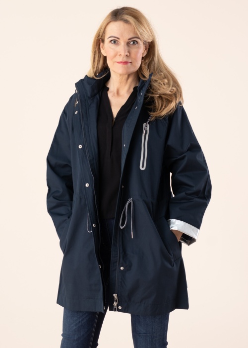 Длинное, удобное весенне-осеннее пальто Tom Tailor выдержано в морском стиле. Серебристые детали создают эффектный контраст. Центральная застёжка на молнии с двумя бегунками и защитной планкой на кнопках. Свободно ниспадающие рукава широкого кроя, с серебристым подворотом. Съёмный капюшон на утягивающем шнуре, с подкладкой и фиксацией на кнопки. Талия на утягивающем шнуре придаёт женственность силуэту. Практичные карманы на полочках вместят ключи и телефон. Гладкая подкладка из полиэстера. Удобная петля-вешалка. Рост модели 178 см. Демонстрируемое изделие размер S. Длина изделия по спинке 85,5 см. Состав материала: хлопок 53%, полиэстер 47%. Цвет: тёмно-синий