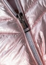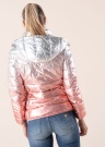 Стильная весенне-осенняя куртка с эффектным металлическим блеском и диффузным узором от бренда Guess – идеальный выбор для женщины, которая не боится привлекать внимание на городских улицах. Верхняя часть изделия эффектного серебристого цвета, нижняя часть цвета металлик. Полочки с застёжкой на удобную молнию. Высокий ворот и съёмный капюшон на утягивающем шнуре, с фиксацией на молнии, обеспечит защиту от холодного ветра. Рукава обрамляет эластичный кант, обеспечивающий хорошую посадку. По бокам изделия расположено два открытых кармана, в которых удобно греть озябшие руки. Скользкая подкладка облегчает процесс одевания, не цепляясь при этом за одежду. При изготовлении наполнителя была использована технология Thermore Ecodown Fibers, обеспечивающая лёгкость, тепло, многослойную структуру изделию, красивую форму в процессе эксплуатации и лёгкость в уходе. Наполнитель выполнен на 100% из переработанных волокон. Рост модели 177 см. Демонстрируемое изделие размер S. Длина изделия по спинке, для данного размера, 63 см. Состав материала. Основная часть, подкладка: полиамид 100%. Наполнитель: волокна полиэстера 100%. Цвет: серебристый/розовый/металлик