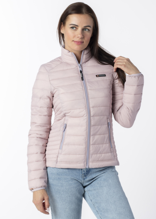 Женская весенне-осенняя куртка от SuperDry выполнена в ярких цветах и имеет стоячий воротник. Куртка стеганая, что подчеркивает фигуру и обеспечивает комфорт в любую погоду. Спереди она застегивается на молнию, а внизу есть шнурок для дополнительного удобства. На груди расположена фирменная нашивка, а спереди — карман на молнии. Манжеты рукавов отделаны резинкой. Модель имеет рост 176 см и носит размер 36.