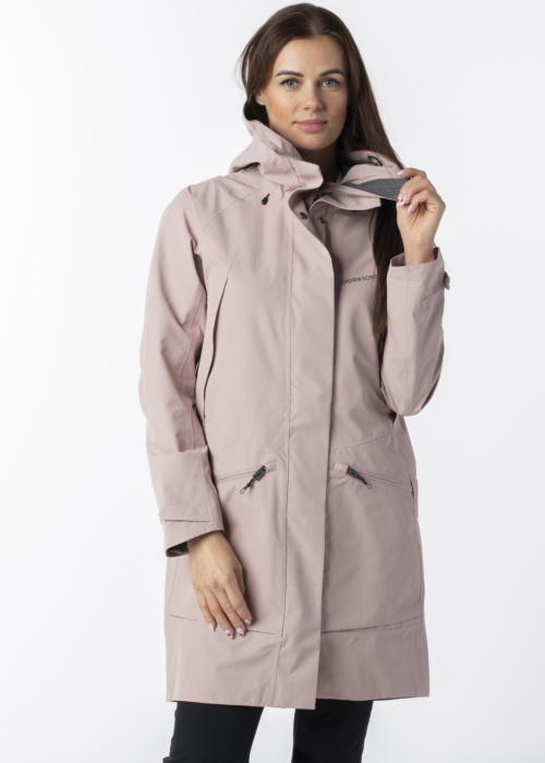 Женская весенне-осенняя парка от Didriksons сочетает в себе стиль и функциональность. Она устойчива к погодным условиям, имеет капюшон и удлиненный крой сзади, что обеспечивает дополнительную защиту от ветра и дождя. Парка оснащена водоотталкивающей и ветрозащитной технологией STORMsystem™ с проклеенными швами, а также имеет передний карман на молнии и внутренний открытый карман. Регулируемая талия и капюшон с резинкой позволяют адаптировать посадку под индивидуальные предпочтения. Модель имеет рост 176 см и носит размер 36.