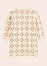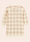 Удобное платье для девочек от Guess с круглым вырезом отлично подходит для повседневной носки. Оно украшено интересным узором и имеет манжеты на рукавах и по нижнему краю. Внизу платья расположена надпись бренда, добавляющая стильный акцент.