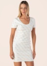 Платье Guess для женщин модели Paige 4G выполнено в элегантном и женственном стиле. Оно имеет круглую горловину и короткие рукава, что придаёт ему нежность и утонченность. Материал приятный на ощупь, а блестящие камешки на передней части добавляют платью изысканности и сияния. Рукава и нижний край украшены резинкой, что обеспечивает комфорт и идеальную посадку. Рост модели 177 см, она носит размер S.