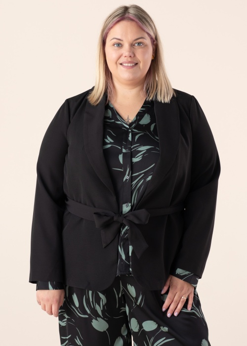 Модный пиджак Vila Evoked освежает и добавляет вкуса. Лёгкий тонкий покрой пиджак - выдержанный и выдержанный. Спереди имеет крючок , в середине- пояс на завязках , также внутри без подкладки. Удобства добавляет эластичность материала. Рост модели - 167 см и носит размер 46.