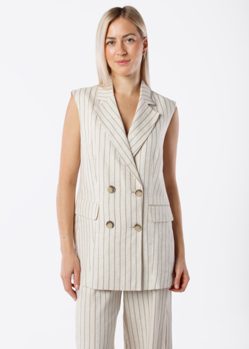 Женский жилет Baila от Ivo Nikkolo — это стильный и элегантный элемент гардероба. Он выполнен с полосатым узором и застегивается на пуговицы спереди. Жилет также украшен блестящими деталями, которые придают ему изысканность.