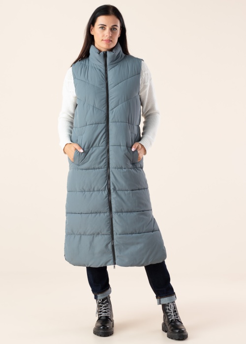 Урбанистический жилет Noisy May позволяет везде чувствовать себя хорошо. Тёплый жилет - горловина-стойка и удлиннённый покрой. Полочки застёгиваются на замок , сбоку открытый карман и удобства добавляют разрез на внешнем боку. Рост модели - 176 см и носит размер S.