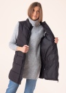 Noisy May Dalcon — незаменимый спутник в осенний сезон! Длинный стёганый жилет приятно согреет как на городской улице, так и в лесу! Жилет имеет небольшой воротник и практичную двухстороннюю переднюю застёжку-молнию. По бокам расположены вместительные карманы. Внутренняя часть покрыта тонкой подкладкой из полиэстера, а для изоляции между двумя слоями используются синтетические волокна, которые имеют лёгкий вес и простоту в уходе. Рост модели: 178 см, размер: S. Длина от верха до нижнего края в данном размере составляет 85 см. Материал: основная поверхность — 100% полиэстер, подкладка — 100% переработанный полиэстер, наполнитель — 100% переработанный полиэстер. Цвет: чёрный.