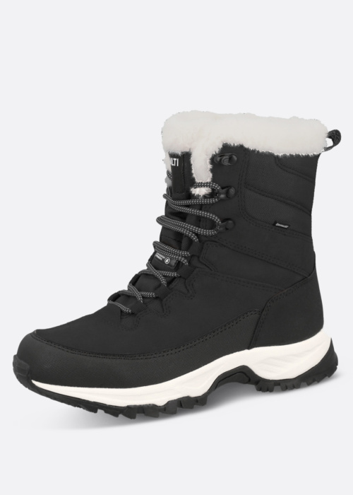Женские зимние сапоги Halti Tornio представляют собой легкую и спортивную обувь, которая не пропускает воду и сохраняет тепло, что делает их идеальными для холодной зимней погоды. У сапог есть шнуровка спереди и декоративные швы по бокам. Меховая отделка по краю добавляет стиль, а светоотражающий элемент на пятке обеспечивает дополнительную безопасность.