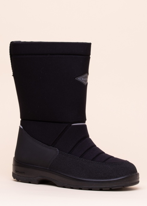 Лёгкие и невероятно тёплые зимние сапоги от финского бренда Kuoma обеспечат комфортное тепло Вашим ногам. Сапоги подходят для повседневной носки в зимний сезон. Поверхность сапог выполнена из кожи и текстиля с водо- и грязеотталкивающими свойствами, что делает сапоги более прочными. Подкладка из очень тёплого и уютного синтетического мехового текстиля. Съёмная стелька. Подошва из синтетического материала. Протектор подошвы обеспечивает надёжное сцепление даже в слякоть. Поверхность изделия с эффектным узором. На пятке расположены светоотражающие элементы. Удобная петля облегчит процесс обувания. Высота сапог без подошвы: 24 см. Логотип бренда на передней части изделия и подошве. Параметры изделия. Цвет: чёрный