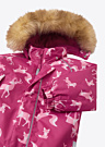 Зимний комбинезон для девочек Reima Lappi украшен увлекательным узором, который обязательно понравится каждому ребенку. Этот комбинезон защищает от непогоды, отталкивает воду и не пропускает ветер, обеспечивая комфорт в любую погоду. Дышащий материал и съемный капюшон с меховой отделкой добавляют удобства и практичности. На передней части есть карман на молнии, а также эластичная талия и светоотражающие элементы для безопасности.