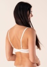 Milavitsa krūšturis Vintage ir dekorēts ar sievišķīgām smalkām mežģīnēm, kas liek justies skaistai un burvīgai. Izturīgi veidotajām bļodiņām ir atbalsta arkas, smalkās plecu lencītes ir regulējamas, aizmugurē ir divrindu āķu aizdare. Apakšā ir šaura izliekta mežģīņu maliņa. Modeles augums ir 176 cm un valkā 75B izmēru.