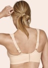 Šie ērti un polsterētie Miss Mary of Sweden krūšturi Stay Fresh ir ideāli piemēroti sievietei, kurai patīk vienkāršība un komforts. Virsma izgatavota no elastīga, stiprāka auduma, kam ir mīksts pieskāriens ādai. Atbalstu nodrošina atbalsta siksnas zem krūtīm un stingrāka gumijas josla, kas ērti velkas ap valkātāja ķermeni. Plecu siksnām ir platāks, polsterēts stils plecu zonā, kas palīdz novērst nepatīkamu rievošanos, un plecu siksnas var regulēt no aizmugures. Aizmugurē tie ir piestiprināti pie kājām ar četrpakāpju āķi, kas piedāvā trīs dažādus spriedzes līmeņus. Materiāls: poliamīds 86%, elastāns 11%, poliesters 3%. Krāsa: bēša.