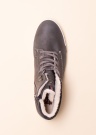 Mustang zīmola vīriešu puszābaki siltajai rudens sezonai. Virsējā apdare izgatavota no viegli kopjamas mākslīgās ādas, ko rotā efektīgas, baltas šuves. Kopā ar sānu rāvējslēdzēju un auklu aizdari apavi ir viegli un ātri uzvelkami. Iekšpusē patīkami silta, pūkaina odere. Gumijotā ārzole ir elastīga, nodrošinot valkāšanas komfortu uz katra soļa. Mustang logo uz apavu mēles, papēža ārmalā un zoles ārmalā. Svars 46. izmēram ir 481 g. Krāsa: pelēka.