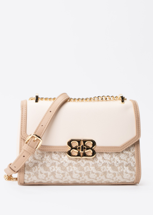 Nabo sieviešu soma ir skaists un sievišķīgs aksesuārs, kas izceļas ar savu eleganto dizainu un izsmalcināto formu. Priekšpusē ir dekoratīvs elements, kas piešķir somai mirdzošu akcentu un piesaista uzmanību. Iekšpusē ir praktiska kabata ar rāvējslēdzēju, kas nodrošina mantu drošu un vieglu glabāšanu.