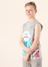 Name it apakškrekls Zolvom ietver sevī sērfarisku, satraucošu noskaņu, izgatavots no ādai draudzīgas organiskās kokvilnas, bet priekšpusi rotā vasarīgs prints. Modeļa augums 148 cm, valkā 146. izmēru. Materiāls: organiskā kokvilna 100%. Krāsa: pelēka