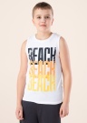 Vasarīgs Name It Kids apakškrekls der brīvā laika pavadīšanai. Ērts un bez piedurknēm apakškrekls ir mīksts un elastīgs , kā arī priekšpusi rotā izteiksmīgs drukas attēls. Foto: augums 150 cm valkā 146-152 izmēru.