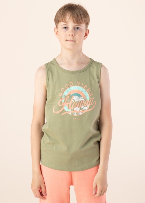 Ērts Name It Kids apakškrekls der vasaras dienu baudīšanai. Ikdienišķs apakškrekls ar patīkamu pieskārienu un elpojošs. Akcentu piešķir drukas attēls priekšpusē , kā arī praktiskumu piešķir valnītis. Esi gatava katrai pārsteidzošai dienai! Foto: augums 150 cm valkā 146-152 izmēru.