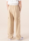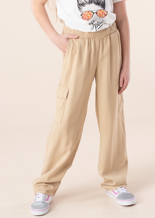 Burvīgas Name It Kids bikses der valkāšanai skolā, mājās vai pavadot laiku kopā ar draugiem. Ar plānāku stilu brīvi krītošas bikses ir ar elastīgu jostasvietu un ar platiem staru galiem. Sānos ir atvērtas kabatas , uz starām ir kabatas ar atlokiem un apkārtmēru ļauj regulēt tuneļa gumija ar pogām iekšpusē. Foto: augums 145 cm valkā 152 izmēru.