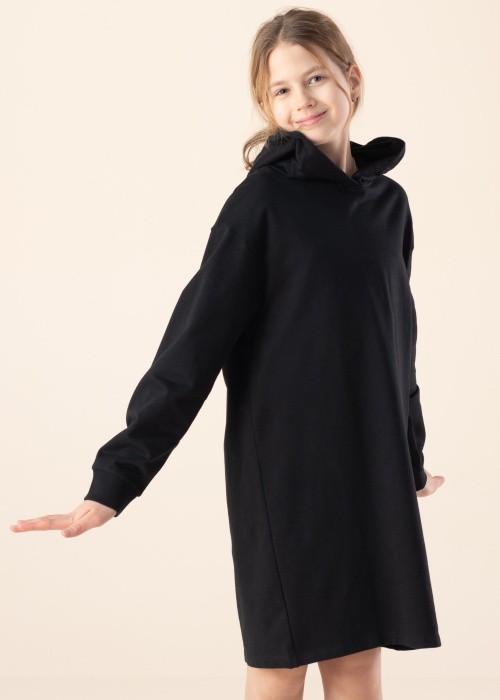 Vienkārša Name It Kids džemperkleita der ikdienas skolas gaitām. Ērta un ar kapuci džemperkleita ir ar siltinātu iekšpusi un ar patīkamu pieskārienu. [] piedurkņu galos padara izteiksmīgāku. Audums ir patīkami mīksts un labi krītošs. Foto: augums 154 cm valkā 152 izmēru.