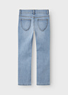 Name It Kids meiteņu džinsa bikses Salli ir lielisks tērps modernām un stilīgām meitenēm. Tās ir izgatavotas no elastīga materiāla, kas nodrošina komfortablu valkāšanu un pielāgojas ķermeņa formai, pateicoties šaurajam piegriezumam un šaurajām starām. Biksēm ir savelkama gumija jostasvietā, kā arī rāvējslēdzējs un āķis priekšpusē, kas nodrošina ērtu un drošu aizdari. Produkts ir krāsots ar indigo krāsvielu, kas piešķir oriģinālu džinsa krāsu, kas mazgāšanas laikā dabiski izbalē, radot unikālu izskatu.