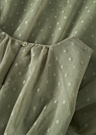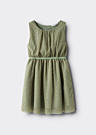 Name It Kids meiteņu kleita Vabos ir izteiksmīga un burvīga, pateicoties tās elegantajam un maigajam dizainam. Plīvojošais audums un skaistais vizuālais izskats rada svētku noskaņu, padarot to par lielisku izvēli īpašiem notikumiem. Kleitai ir elastīga josta viduklī un pogu aizdare aizmugurē, kas nodrošina komfortablu un stilīgu valkāšanu.