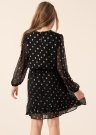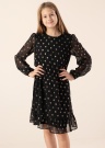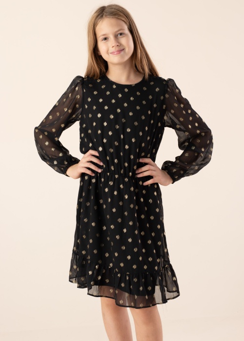 Svinīga Name It Kids kleita pārsteidz ar labu izskatu. Stilīga un ar apaļu kakla izgriezumu kleita ir viegla un gaisīga. Komfortu piešķir gumija viduklī , piedurkņu galos ir gumijas , uz muguras atrodas neliela pogu aizdare un iekšpusē ir apakškleita. Foto: augums 150 cm valkā 152 izmēru.